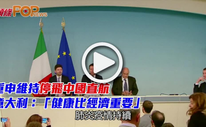 重申維持停飛中國直航 意大利:「健康比經濟重要」