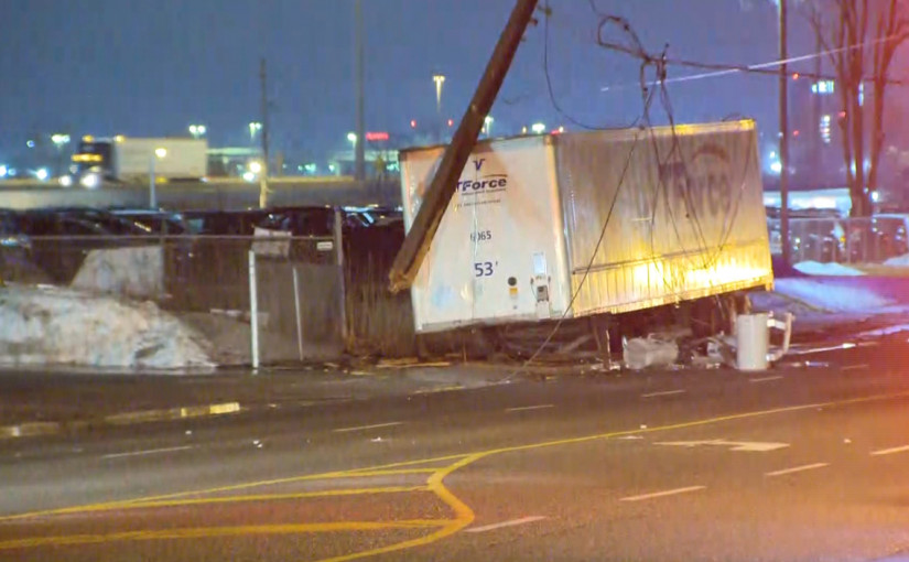多倫多警隊表示,事件發生於周二(3日)晚上大約11時,位於怡陶碧谷Belfield路東,1輛貨櫃車駛經上址時,在1個彎位突然失控,貨櫃車衝出馬路,撞斷路旁1支電燈柱,由於電燈柱被撞斷,3個變壓器跌在路上。