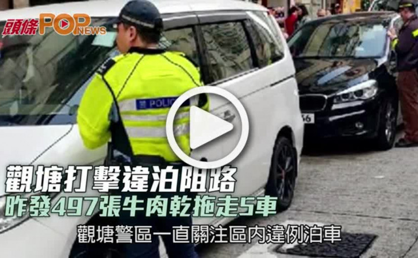 觀塘打擊違泊阻路 昨發497張牛肉乾拖走5車