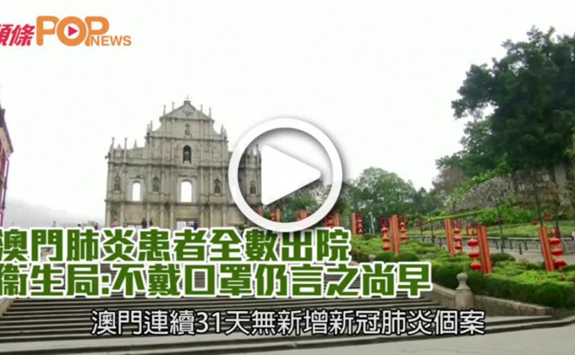 澳門肺炎患者全數出院 衞生局:不戴口罩仍言之尚早