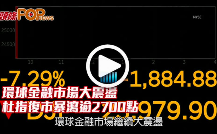 環球金融市場大震盪 杜指復市暴瀉逾2700點
