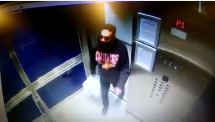 在這段約40秒的短視頻中,可以看到一個戴眼鏡、黑色鬍鬚濃密的男子,右手提購物塑膠袋自P1層走入電梯,手中也持有進入柏文的電子門禁卡。當電梯行駛到8樓電梯門打開時,該男子先略微向左轉頭,然後頭部向右略低,向電梯樓層按鍵盤吐出一大口口水,然後走出電梯門離去。