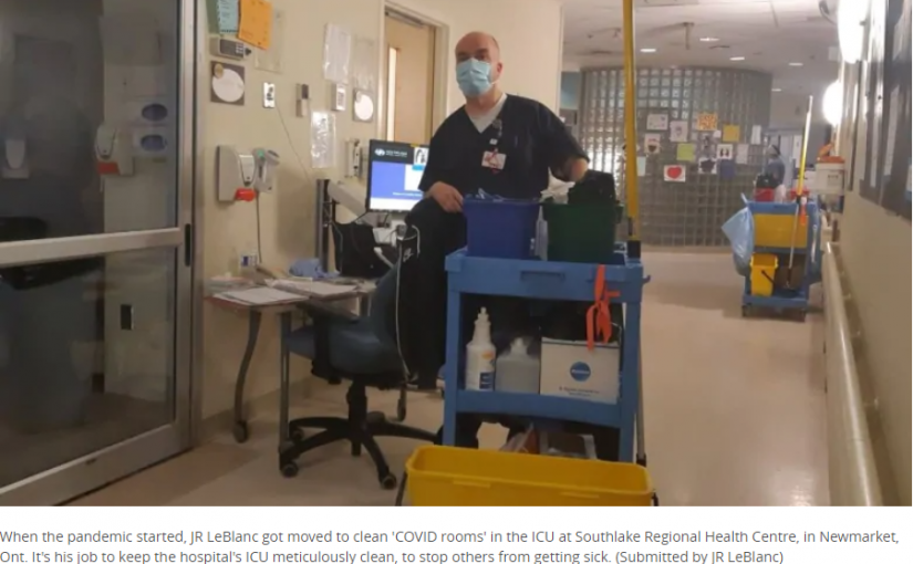 據CBC報道,李布蘭克是紐馬克醫院Southlake Regional Health Centre的清潔工人。疫情開始後,他被安排清潔醫院重症監護室。這些病室被他稱為「新冠病房」。確診病人住在這些病房裡。首先,他要撕掉隔簾,然後,他要深度清潔墻,床,電線,洗手間,和每個櫃檯檯面。