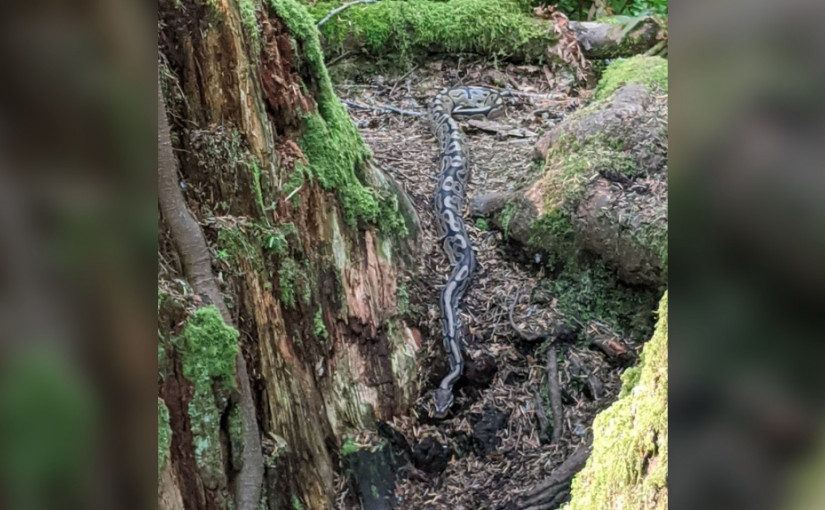 【星島綜合報道】蘭里一個家庭周二下午5時左右,在素里的泰恩黑德地區公園(Tynehead Regional Park)散步時,在公園的孵化場附近見到一條蟒蛇,該蟒蛇長約4呎。