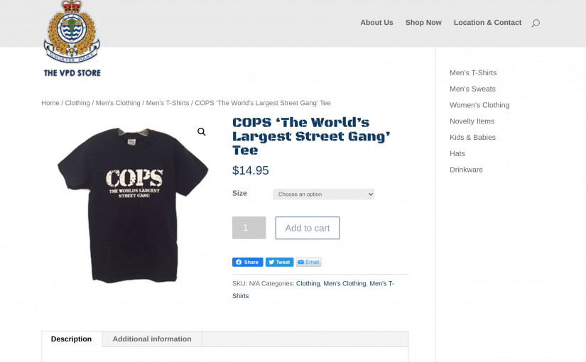 警方續道,該T恤不是溫哥華警方的品牌,溫哥華警方對該商店網站出售的物品概不負責,也不從商店中獲取收益。