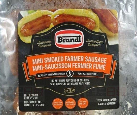【星島綜合報道】G. Brandt Meat Packers正回收迷你煙熏香腸,原因是該產品有可能受到李斯特菌所污染。