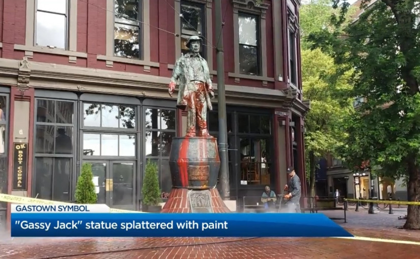 周二早晨,溫哥華一個著名雕像遭到破壞。位於市中心煤氣鎮的「蓋斯·傑克」塑像,被人潑上紅色油漆。