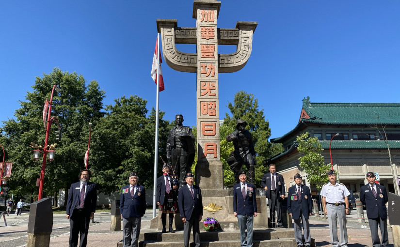 【星島記者報道】加拿大海陸空軍退伍軍人第280分會與華裔軍事博物館8月15日上午11時在溫哥華華埠紀念廣場舉行獻花儀式,紀念第二次世界大戰太平洋戰役結束75周年。