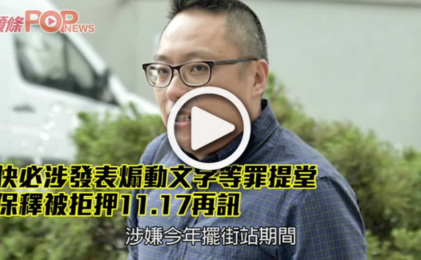快必涉發表煽動文字等罪提堂 保釋被拒押11.17再訊