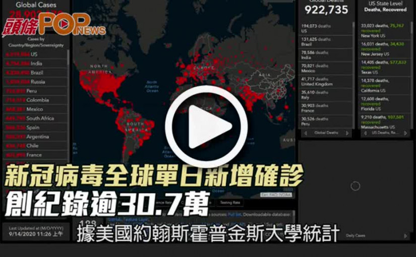 新冠病毒全球單日新增確診 創紀錄逾30.7萬
