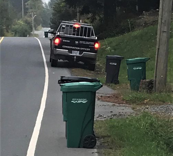卑詩省環境保護服務官員正在卑詩省各社區巡邏。上星期位於那乃磨(Nanaimo)的官員向違規者開出違規罰單,因為這些居民在清潔車預定出現的12小時前就將垃圾和回收桶都放在路邊了。