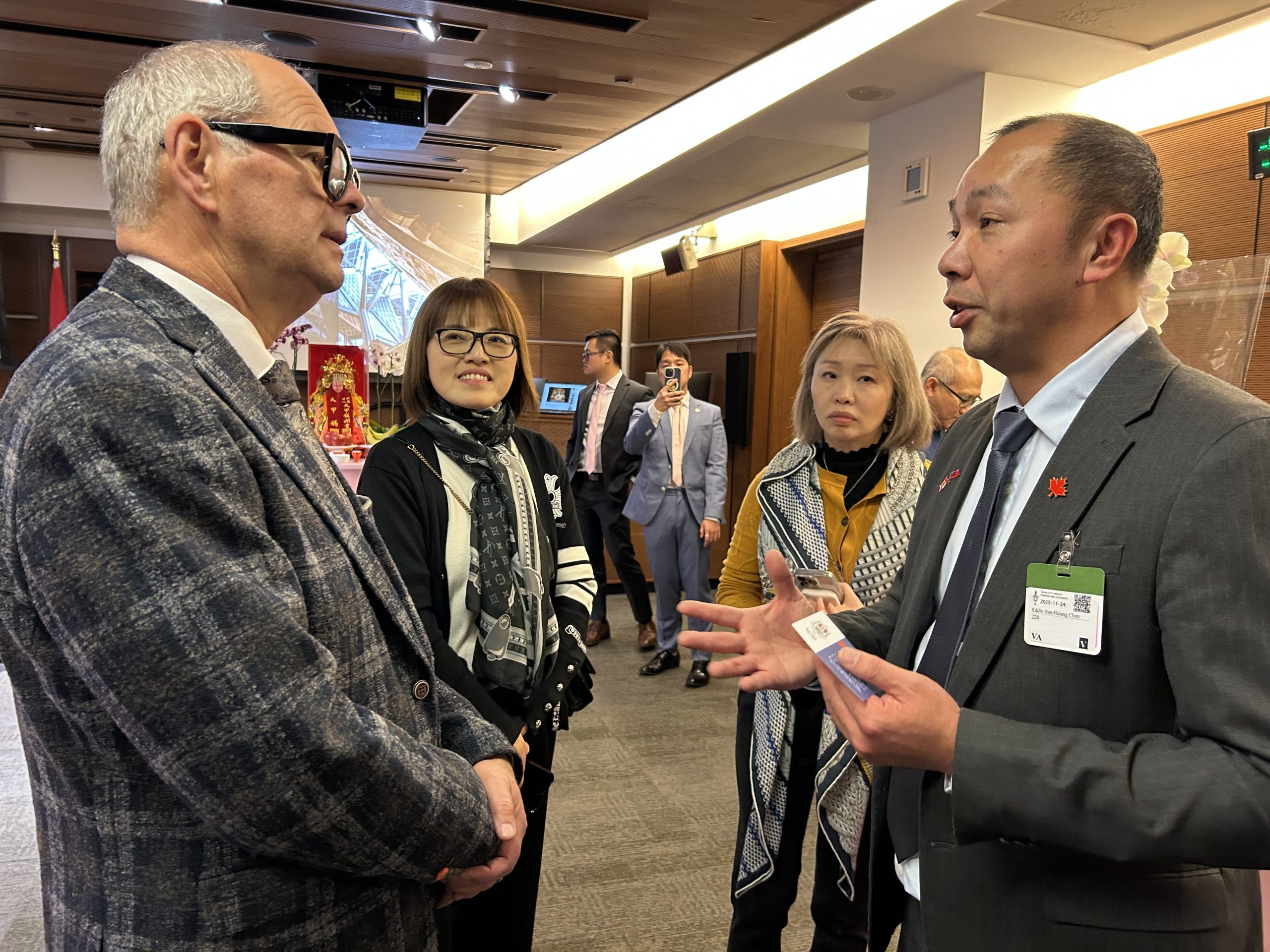另一位加台國會議員友好協會共同主席麥唐納(Michael MacDonald)盛讚台灣擁有完善的醫療體系、高科技,以及自由貿易、安全。他說:「我愛世界上的許多城市,但我從未像在台北街頭感受到如此魅力,這就是我們在此齊聚一堂的原因,支持加台合作,讓世界知道台灣值得支持。所以,當談到加拿大及國際組織時,考慮到展現自由民主,讓我們與台灣聯繫在一起。」