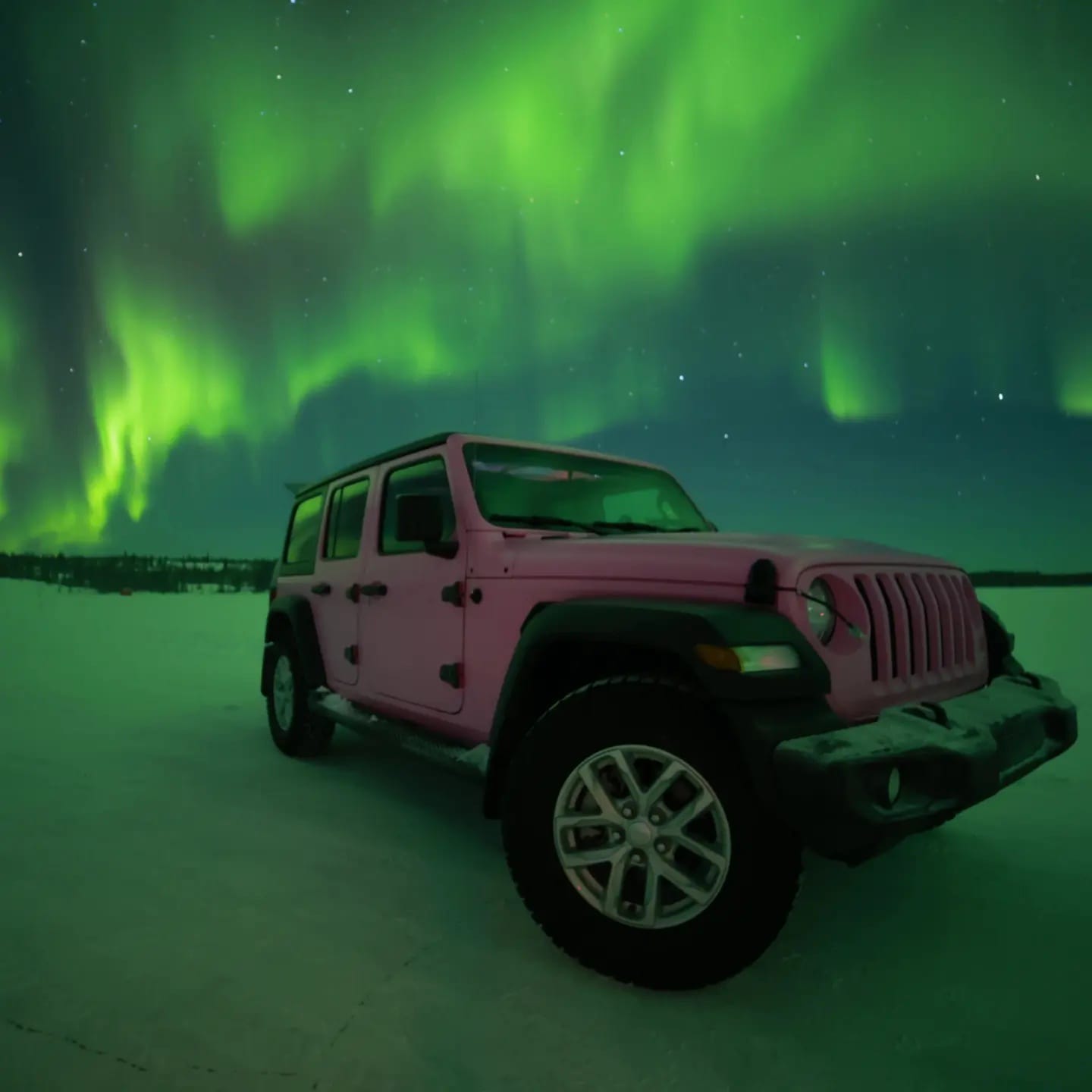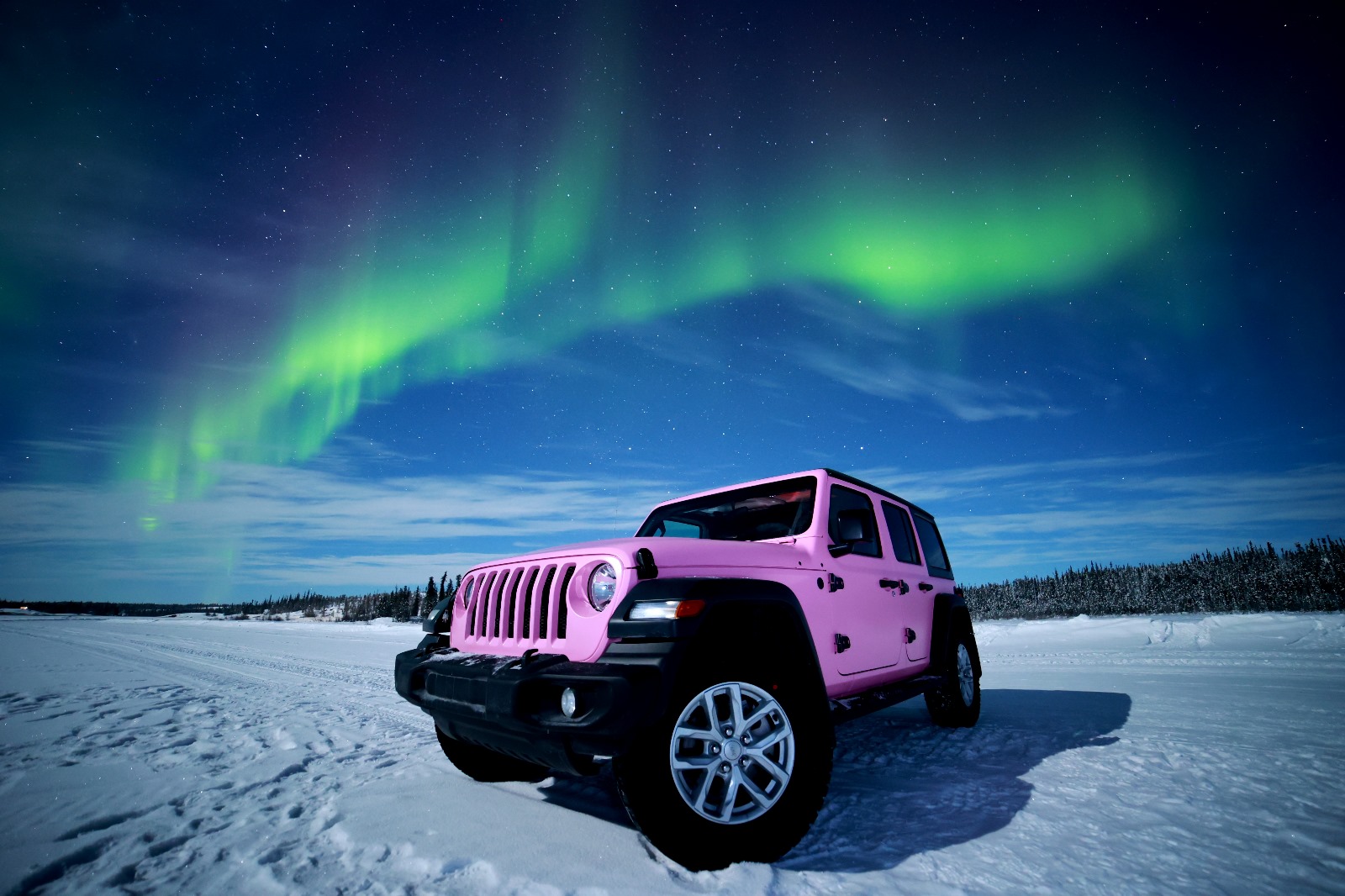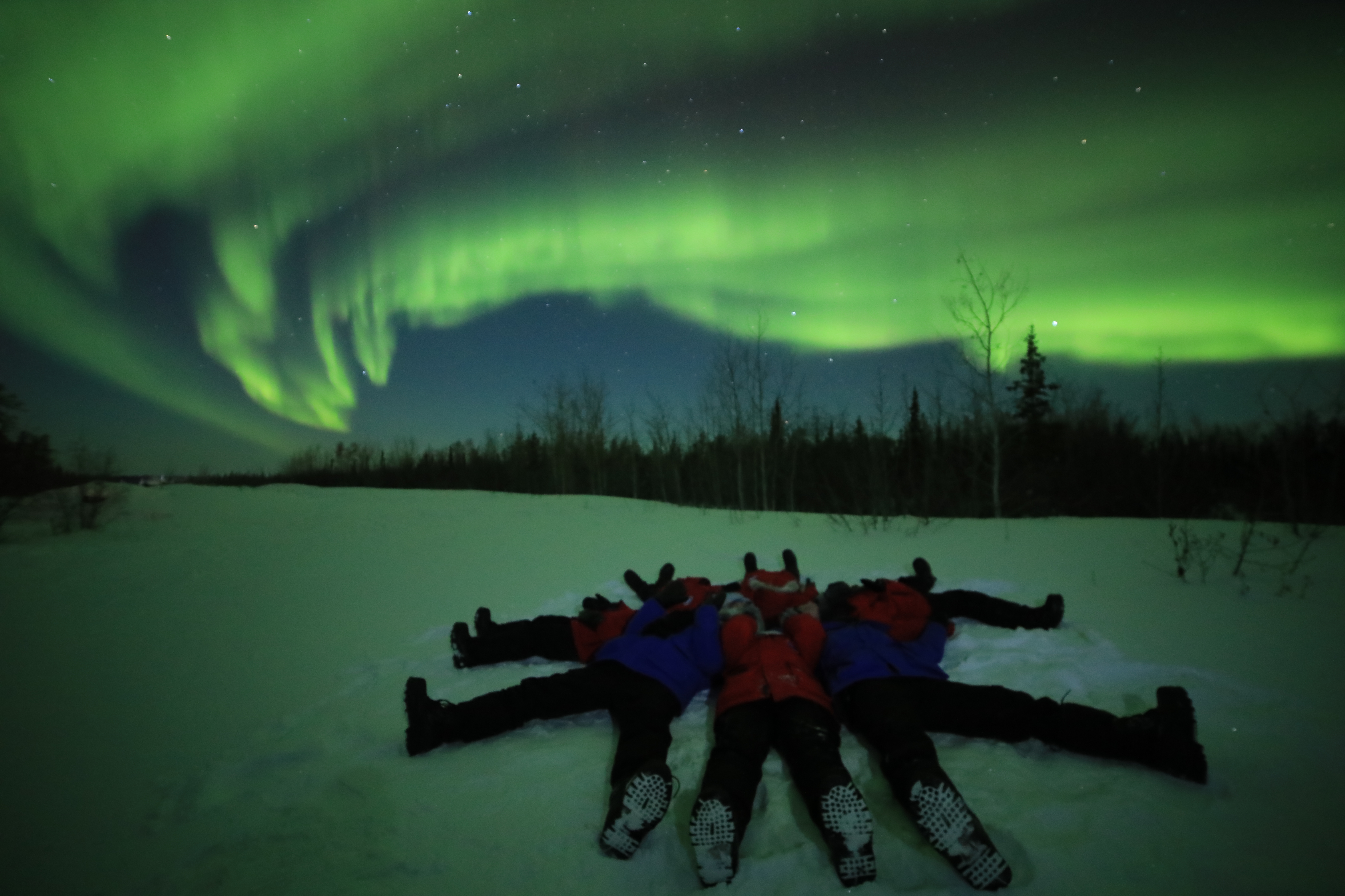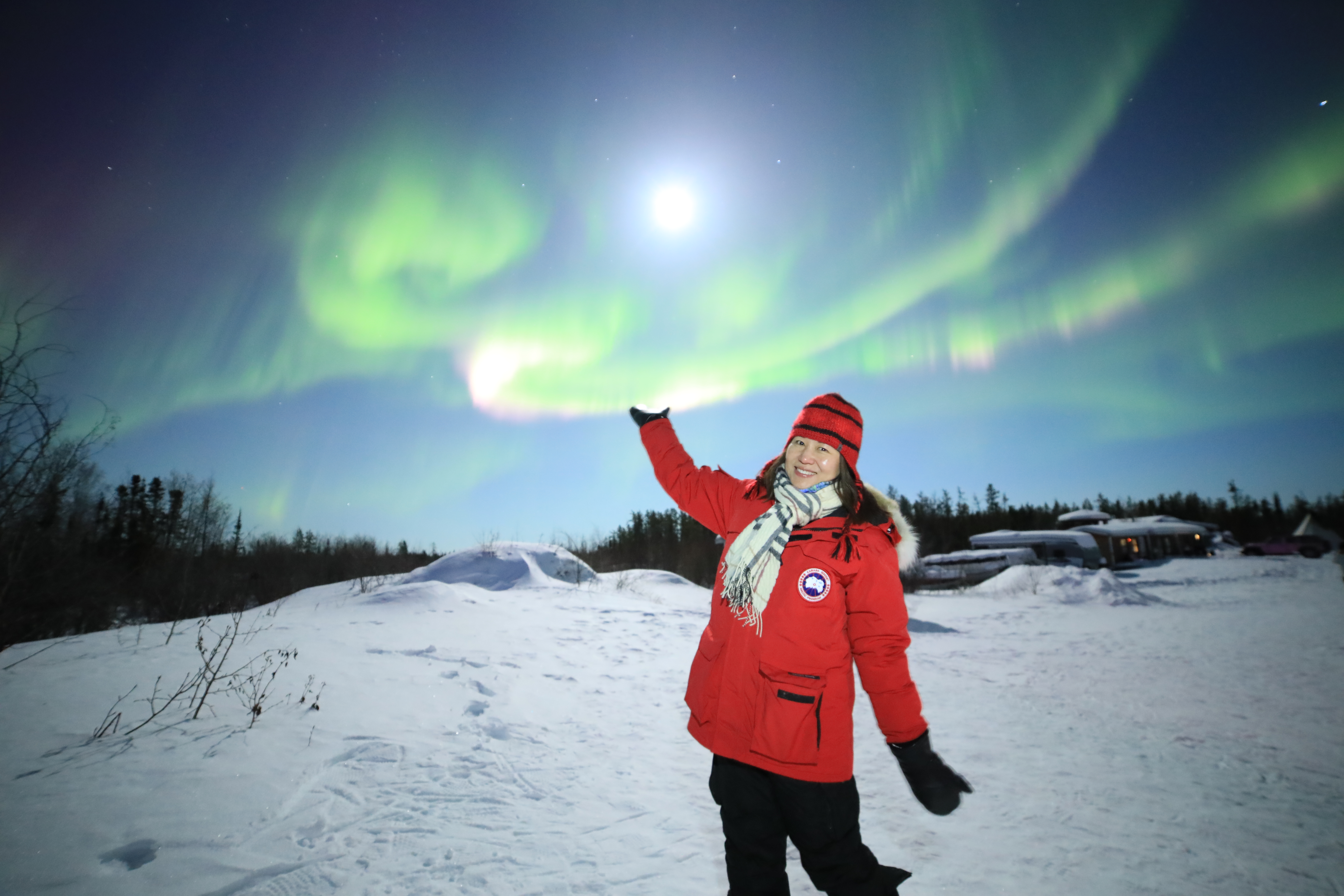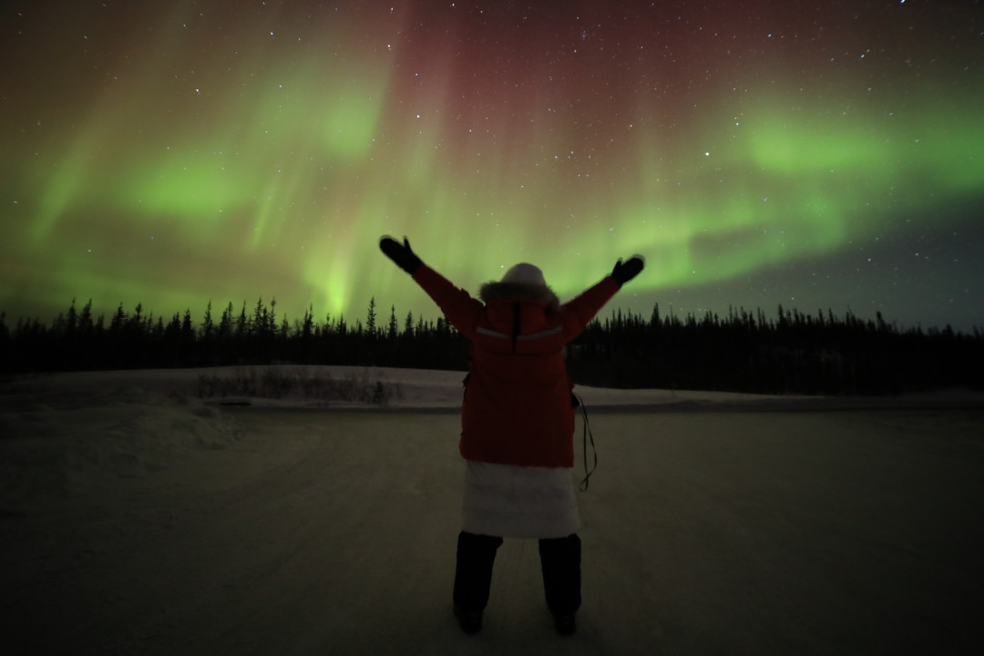 黃刀鎮極光在夜空中綻放出絢麗的色彩。