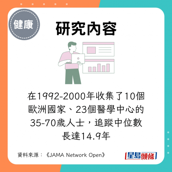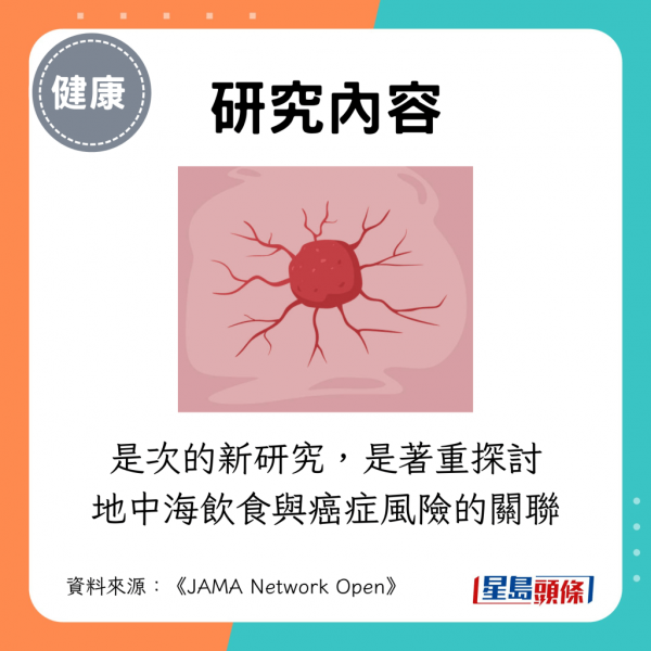 這項研究使用了歐洲前瞻性癌症與營養研究(EPIC研究)的數據。李柏賢醫生指,EPIC研究在1992-2000年收集了10個歐洲國家、23個醫學中心,共450,111名35至70歲人士的數據,追蹤中位數長達14.9年,因而是全球最具影響力的癌症與營養學數據之一。而是次的新研究,是著重探討「地中海飲食」與癌症風險的關聯,結果發表在《JAMA Network Open》。