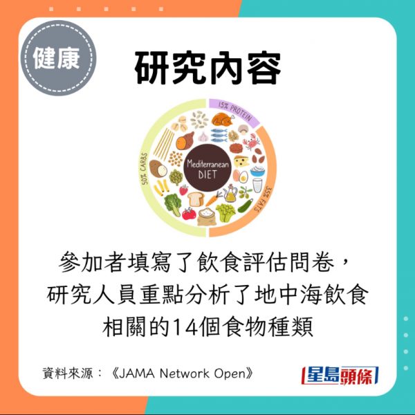 參加者填寫了飲食評估問卷,研究人員重點分析了地中海飲食相關的14個食物種類: