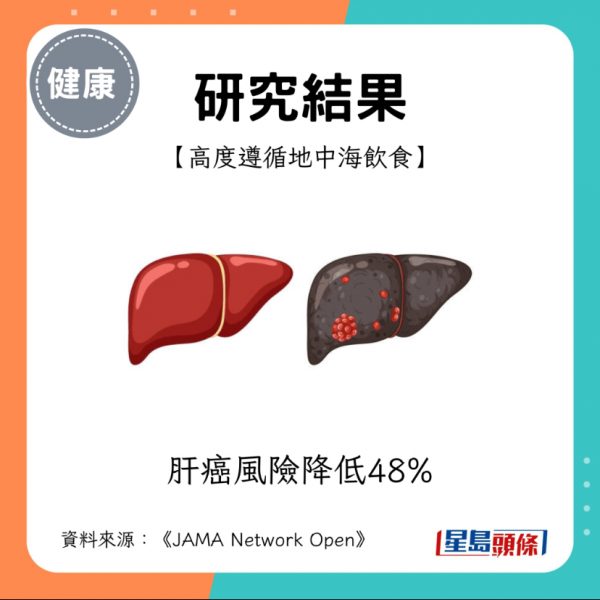 胃腸肝膽科醫生李柏賢在Facebook專頁發文表示,一項最新研究證明,地中海飲食法有助預防4大常見癌症,最多可使患肝癌風險大減48%。