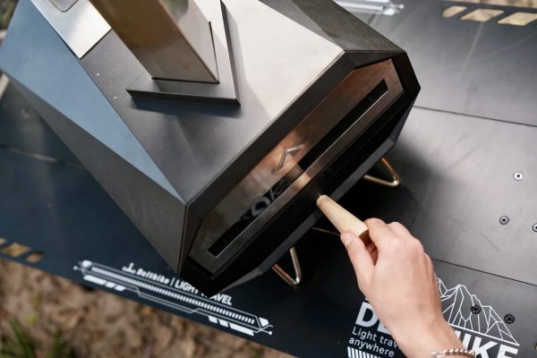 在結構設計上,Vennoe T01 強調快速設置與收納。官方指整個安裝流程僅需約一分鐘,只需將焗爐放於平坦地面、展開支腳並裝上煙囪即可使用。收納時,煙囪及細小配件可全部收入機身內,配合肩帶後可單手提起,攜帶方式更接近一件大型手提袋,而非傳統戶外焗爐。隨機附送的多功能工具,既是開門把手,亦可用來旋轉薄餅盤,設計取向偏向實用。