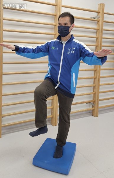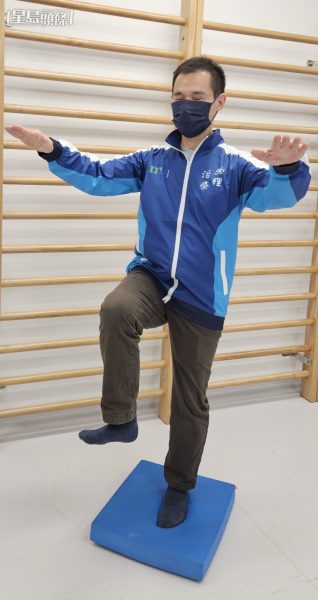 1. 單腳平衡訓練:患側單腳站立,另一腳膝部90度屈曲,腳掌離地,保持平衡。