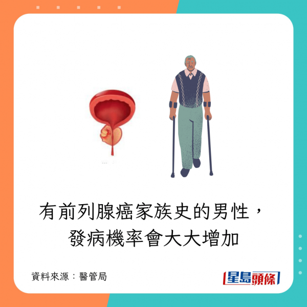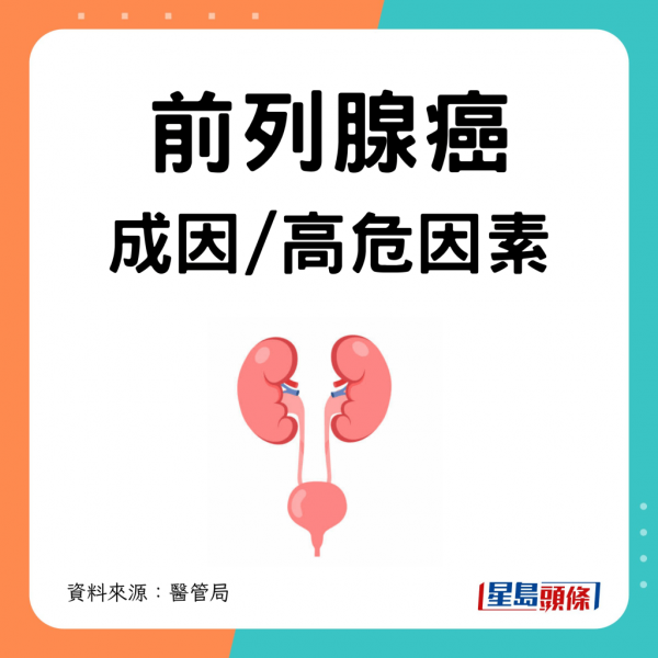 至於前列腺癌的成因,醫管局指出前列腺癌成因至今未明,但以下4類人士有較高的潛在發病風險: