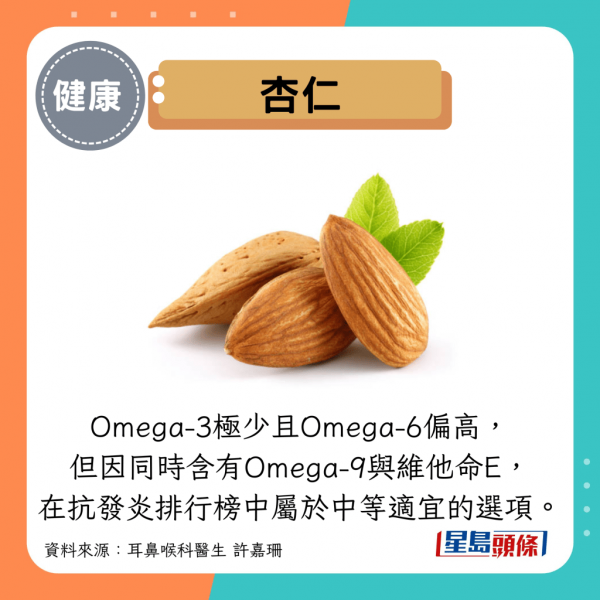 Annette Snyder則推薦杏仁,它可能是被研究得最多的堅果,例如一項研究表明,杏仁脂肪含量高且碳水化合物含量低,與更健康的血糖水平有關。