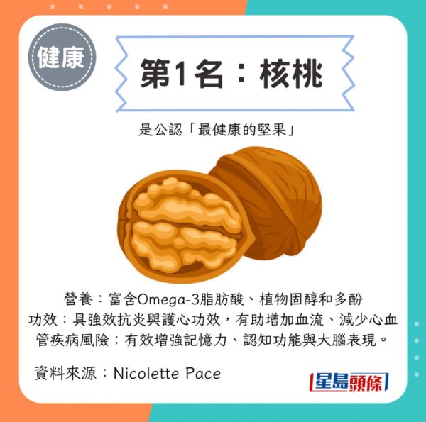 堅果有益健康,而說到受港人喜歡的,必定少不了杏仁、腰果等款式,哪種果仁才最有營養?堅果含豐富的「好油」、蛋白質和膳食纖維,有助降低膽固醇、促進心臟和腸道健康。有營養師根據營養價值對常見堅果進行了排名,冠軍竟然不是大熱之選「杏仁」?