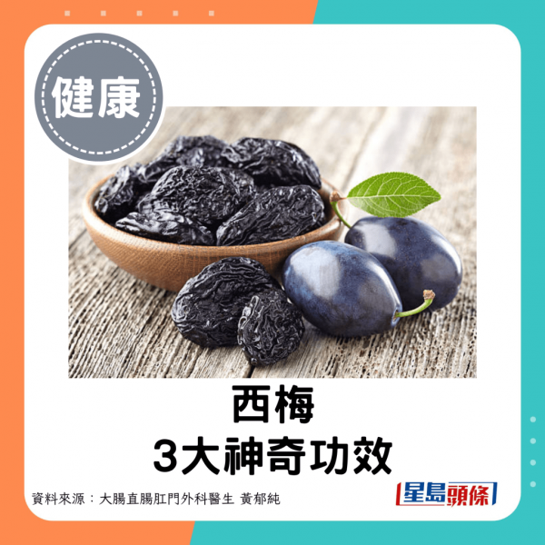 大腸直腸肛門外科醫生黃郁純在Facebook專頁發文指,有1種水果共有3好處,除了有助通便及預防癌症外,更有助改善女性健康。這款水果就是西梅!