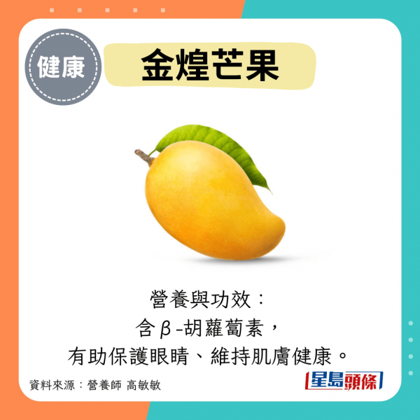- 含β-胡蘿蔔素,有助保護眼睛、維持肌膚健康。