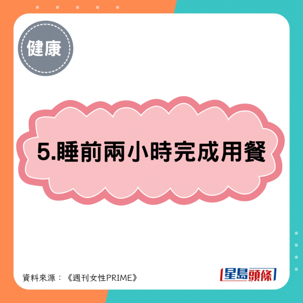5.睡前兩小時完成用餐