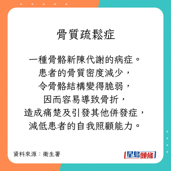 - 長者:造骨能力減弱,骨質容易變得疏鬆