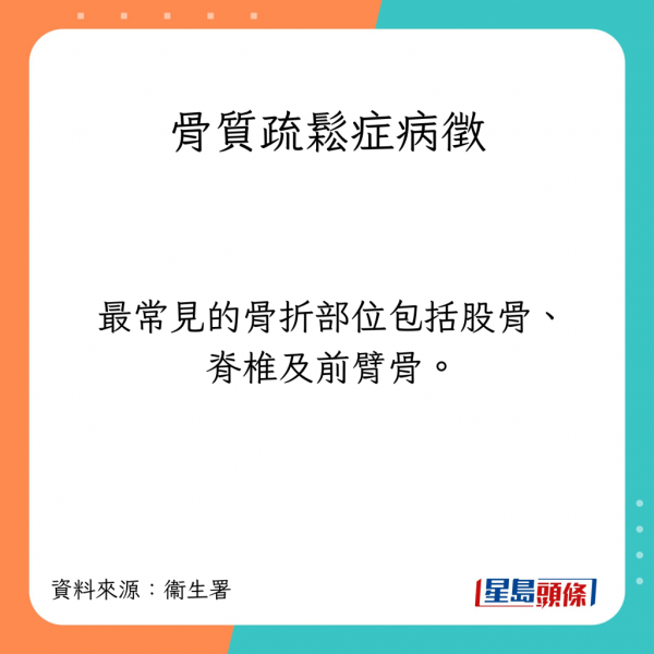 - 最常見的骨折部位包括股骨、脊椎和前臂骨