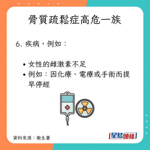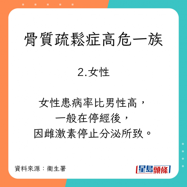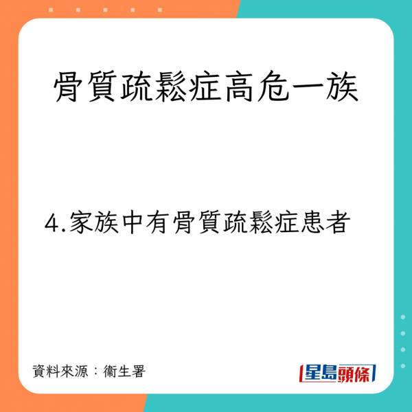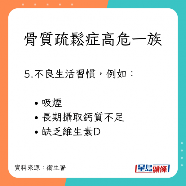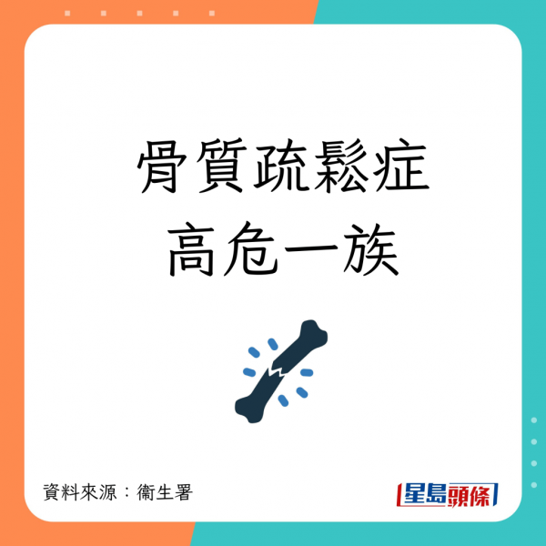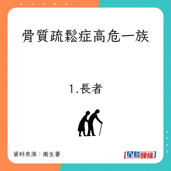 骨質疏鬆症並非只出現於長者或女性身上。根據衞生署資料,以下人士亦是骨質疏鬆的高危族群,過量飲用1類飲品也會增加風險。