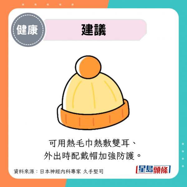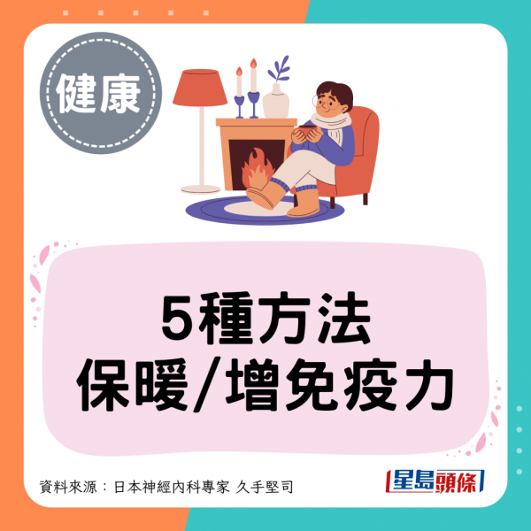 久手堅司解釋,內耳敏感族群常會出現氣壓感現象,因耳朵負責偵測大氣壓力變化並將信號傳遞至大腦,這種過程容易干擾自律神經系統的平衡狀態,從而誘發相關症狀。同時皮膚對冷熱變化的感知信號也會傳送至大腦,當環境溫差過大時,負責體溫調節的自律神經系統會過度活躍,進而引發各種不適症狀。雖然作用機制相異,但兩者皆與大腦及自律神經系統運作密切相關。正如無法隨意控制心跳節律,調節自律神經系統同樣具有難度,這也導致人們在天氣變化時更容易產生不適感。他表示,其實可透過下列5招來維持體溫、增強免疫力,有效預防氣象病發生: