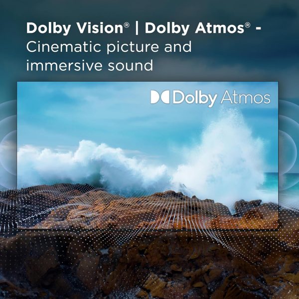 除了畫質升級,音效也毫不遜色。內建 Dolby Atmos 技術,打造三維立體音場,聲音從四面八方環繞而來,讓你彷彿置身現場。