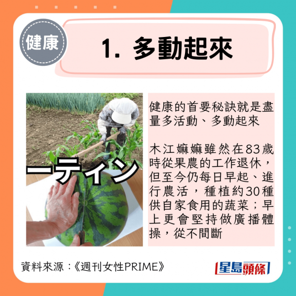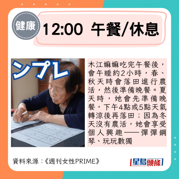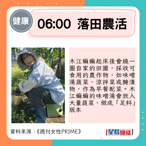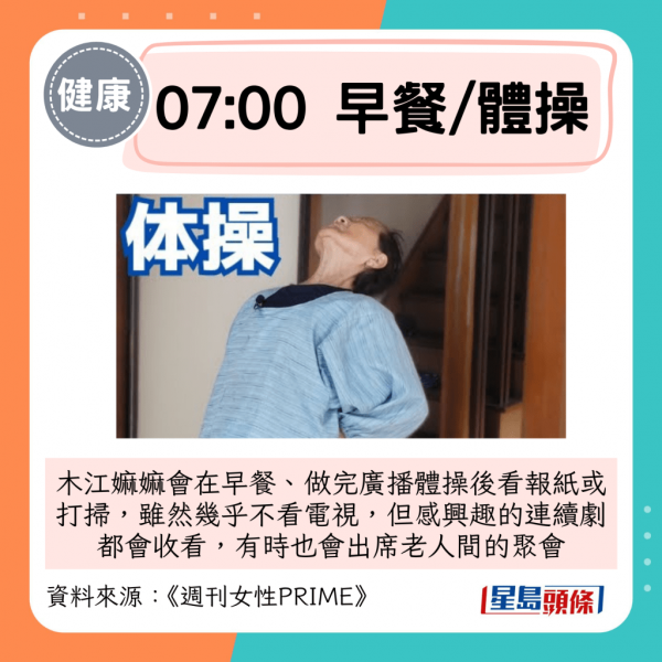 對此,木江婆婆特別公開自己的每日行程及飲食習慣: